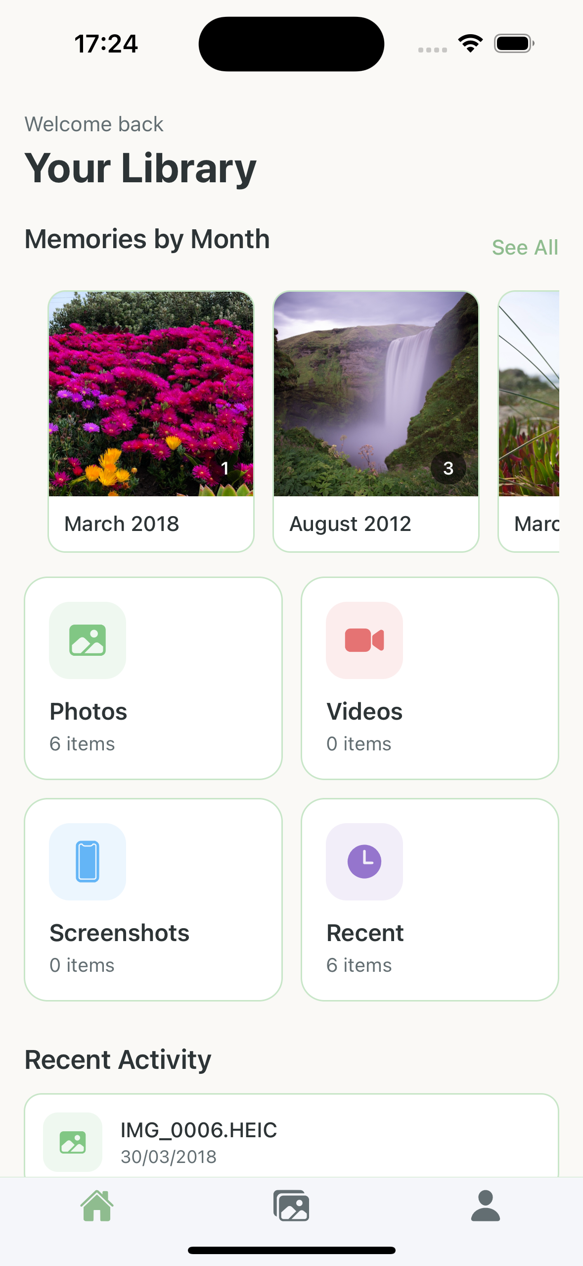 Browse through organized categories: duplicates, blurry photos, screenshots, and more.